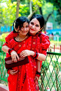 Red Block Saree with Baby Saree