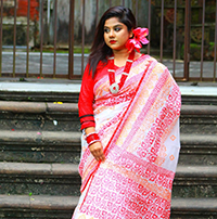 White and Red Block Saree